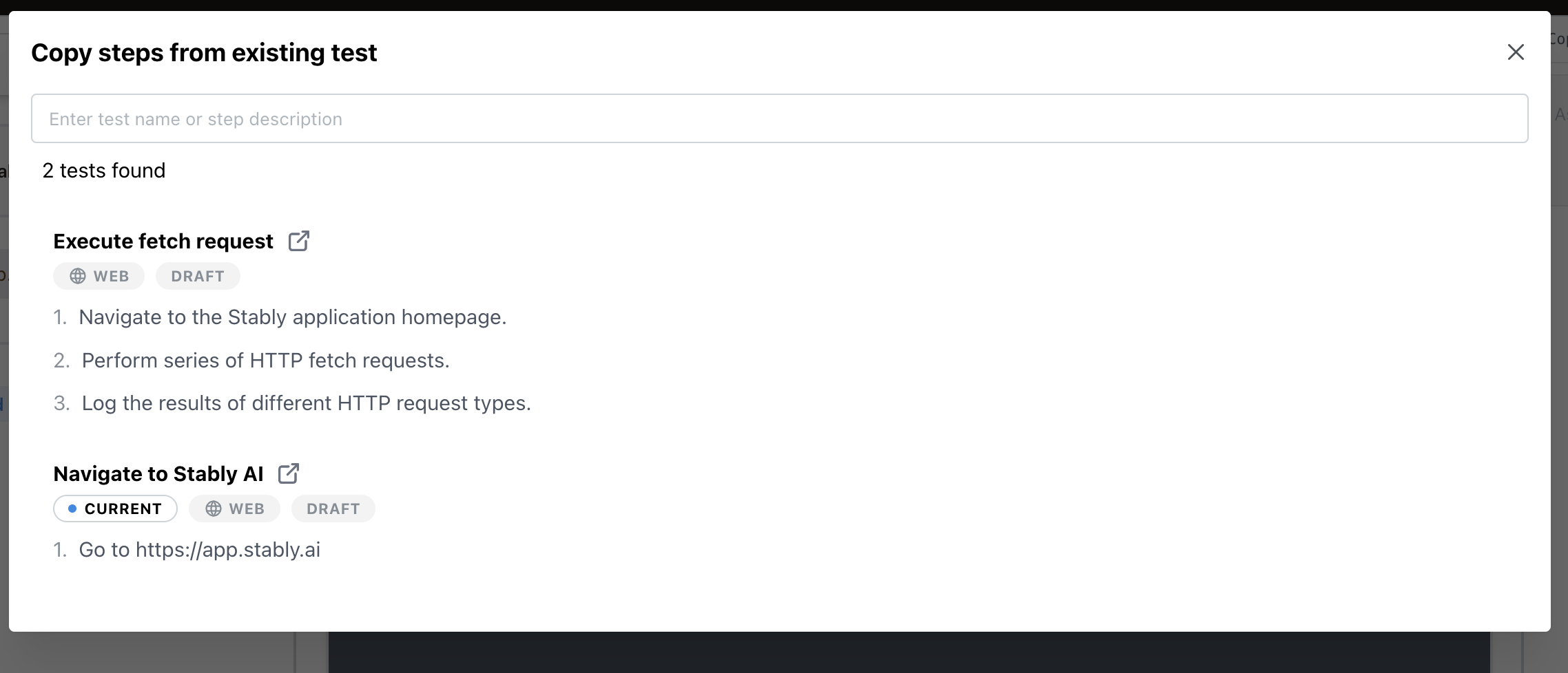 Instead of recreating similar sequences of actions multiple times, you can simply copy existing steps from existing tests.1